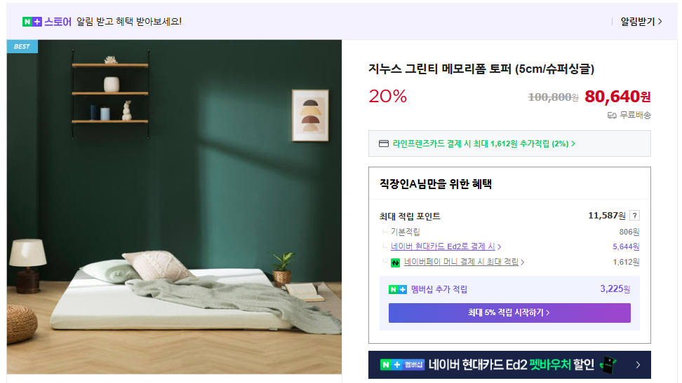- 장점: 10만 원 내외의 가격으로 양질의 메모리폼을 경험할 수 있습니다. 녹차 추출물 등을 함유하여 항균 효과를 더했습니다.